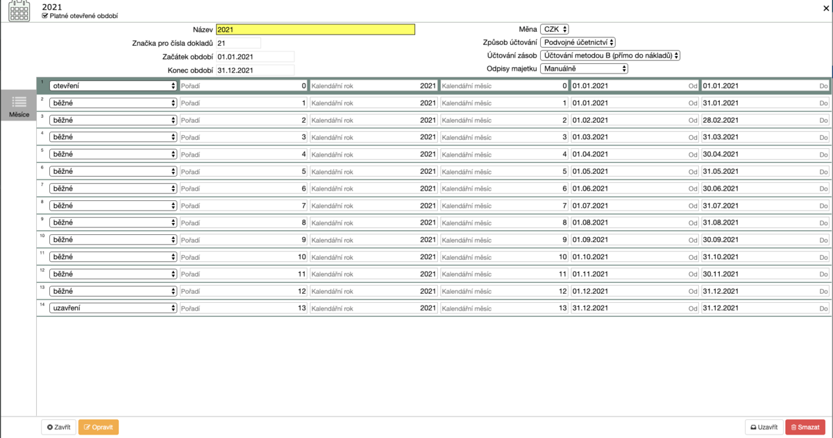 Fiskální období jen pro aktuální a příští rok. V mém případě